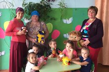 Безнең балалар бакчасында рус һәм татар халкының көнкүрешенә багышланган "Милли йолалар почмагы" бар. Анда көнкүреш кирәк-яраклары, савыт-саба, киемнәр, чигелгән сөлге-кашагалар бар. Тәрбияче Бәдретдинова Г.Н. "Әбиемдә кунакта" уены аша балаларны рус һәм татар халкының милли киемнәре белән таныштырды.