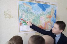 Обучающиеся начальной школы изучают расположение Крыма на физической карте России.