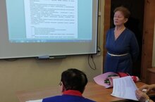 Рус теле һәм әдәбияты укытучысы Миндагалиева Л. Г. квалификация күтәрү курсларында проект эшен яклый