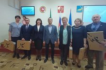 Глава района И.Р. Тазутдинов торжественно вручил ноутбуки директорам школ.