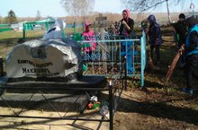 Добровольцы школьного объединения "Солнышко" провели акцию "Памятник". Ребята навели порядок на месте захоронения основателя села Капитона Макашина.