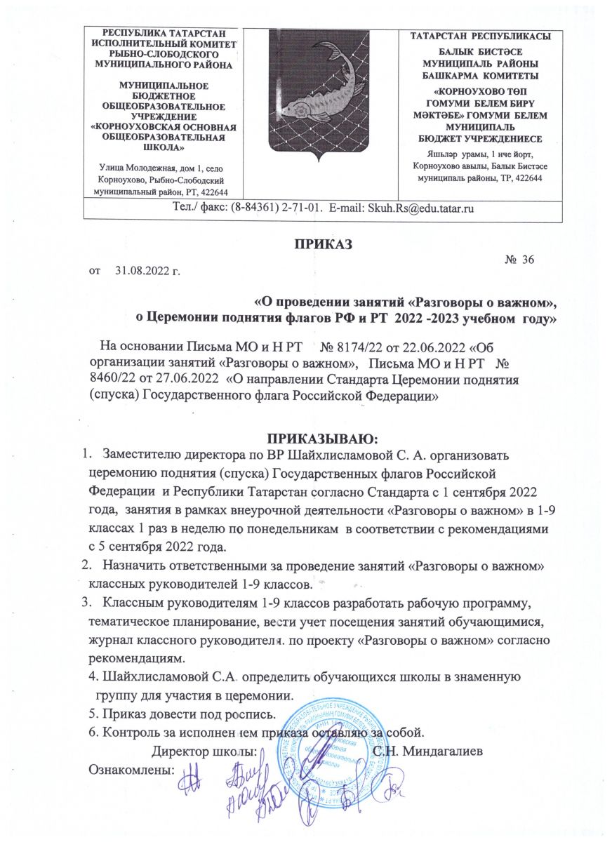 Приказ о церемонии поднятия флагов, Разговоры о важном