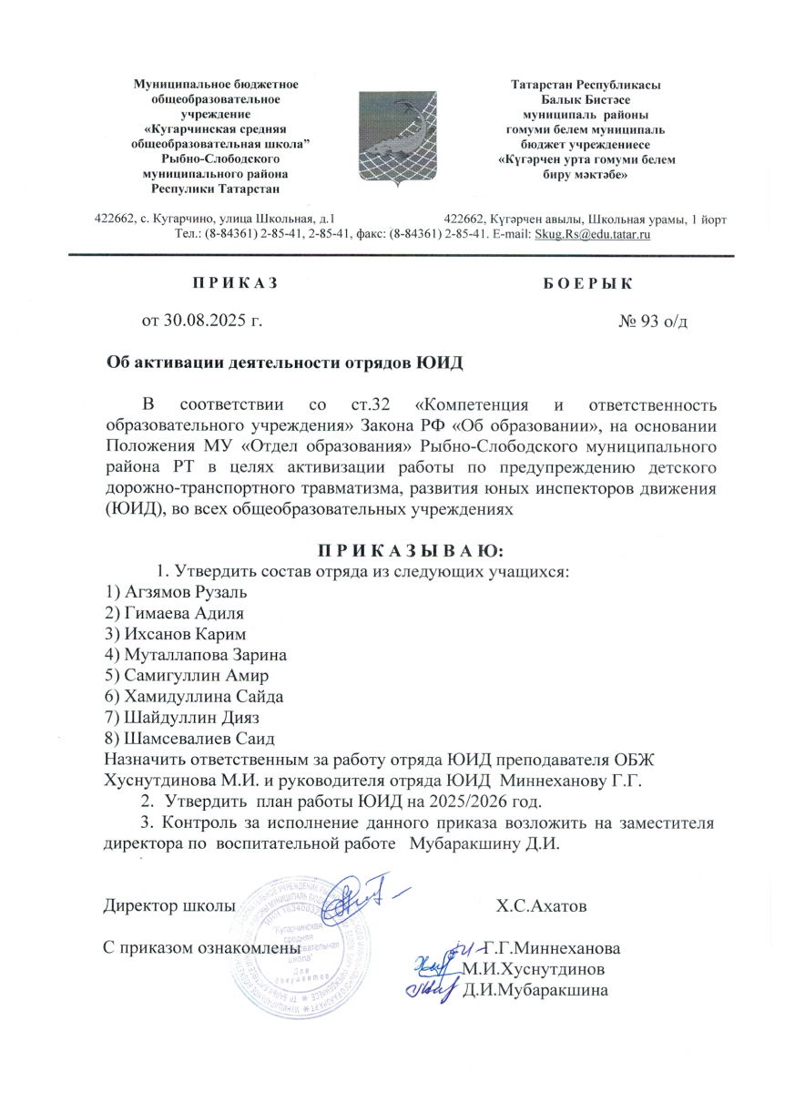 Приказ об активации отряда ЮИД на 2025-2026 уч.год.