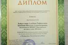 Воспитатели МБДОУ "Ягодка" Хайруллина А.Р. и Зноянова Н.А. заняли l место в муниципальном смотр-конкурсе среди воспитателей на лучшее авторское дидактическое пособие "Копилка безопасности". Поздравляем! Молодцы!