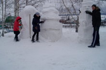 Мәктәбебезнең технология һәм рәсем укытучысы - Рафис Габдерәшитович кар бабае, чыршы һәм елан сыннарын кардан ясый. Аңа 6 сыйныф укучылары бик зур теләктәшлек белән ярдәм итәләр.