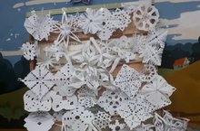 Башлангыч сыйныф укучылары кәгазьдән кисеп кар бөртекләре ясадылар.