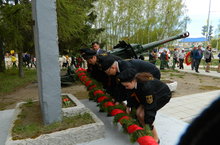 Возложение гирлянды к памятнику "Воинам-афганцам" 22.02.2015 Снежный десант техникума подготовил мероприятие и возложил гирлянду к памятнику Воинам-афганцам