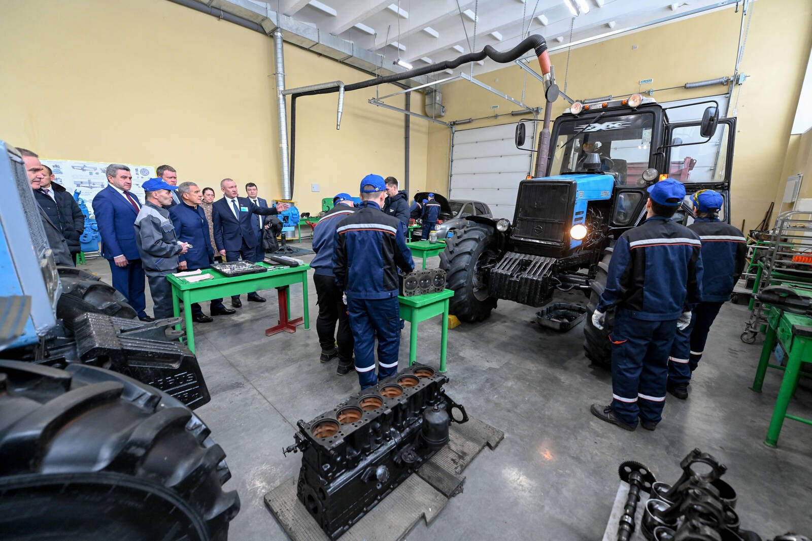 Он также посетил мастерскую, где проходят учебные практики обучающихся техникума по различным модулям – техническое обслуживание и диагностирование неисправностей сельскохозяйственных машин и механизмов; ремонт отдельных деталей и узлов, техническое обслуживание и ремонт автомобильного транспорта.