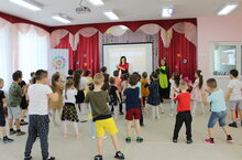 Сегодня в нашем детском саду состоялось развлечение ко Дню английского языка. Старшая и подготовительная к школе группы показали свои знания англиского языка неожиданному гостю, приземлившемуся из другой галактики - динозаврику Гого. Вместе с гостем они узнали много нового о Англии.