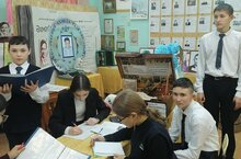 Обучающиеся объединения школьного театра "Юные таланты", на базе МБОУ " Масловской СОШ" под руководством педагога дополнительного образования Хамидуллиной Л.М. знакомятся со сценарием пьесы.