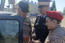 Автоинспекторы и юнармейцы поздравили участников дорожного движения с предстоящим Днем Победы и вручили георгиевские ленточки 14.04.2022 Автоинспекторы и юнармейцы МБОУ " Рыбно- Слободская СОШ №2" в нескольких улицах районного центра поздравляли участников дорожного движения с предстоящим Днем Победы, вручали георгиевские ленточки и призвали помнить историю, оберегать и чтить участников войны и тружеников тыла.Сотрудники Госавтоинспекции напомнили участникам акции о соблюдении ПДД.
