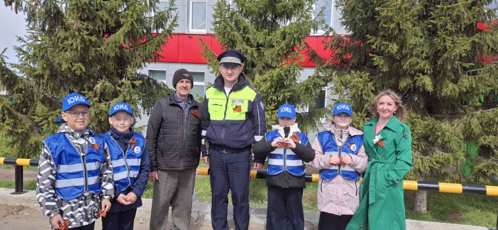 ЮИДовцы раздавали пешеходам и водителям Георгиевскую ленточку и поздравили с наступающим праздником с призывом соблюдать правила дорожного движения.