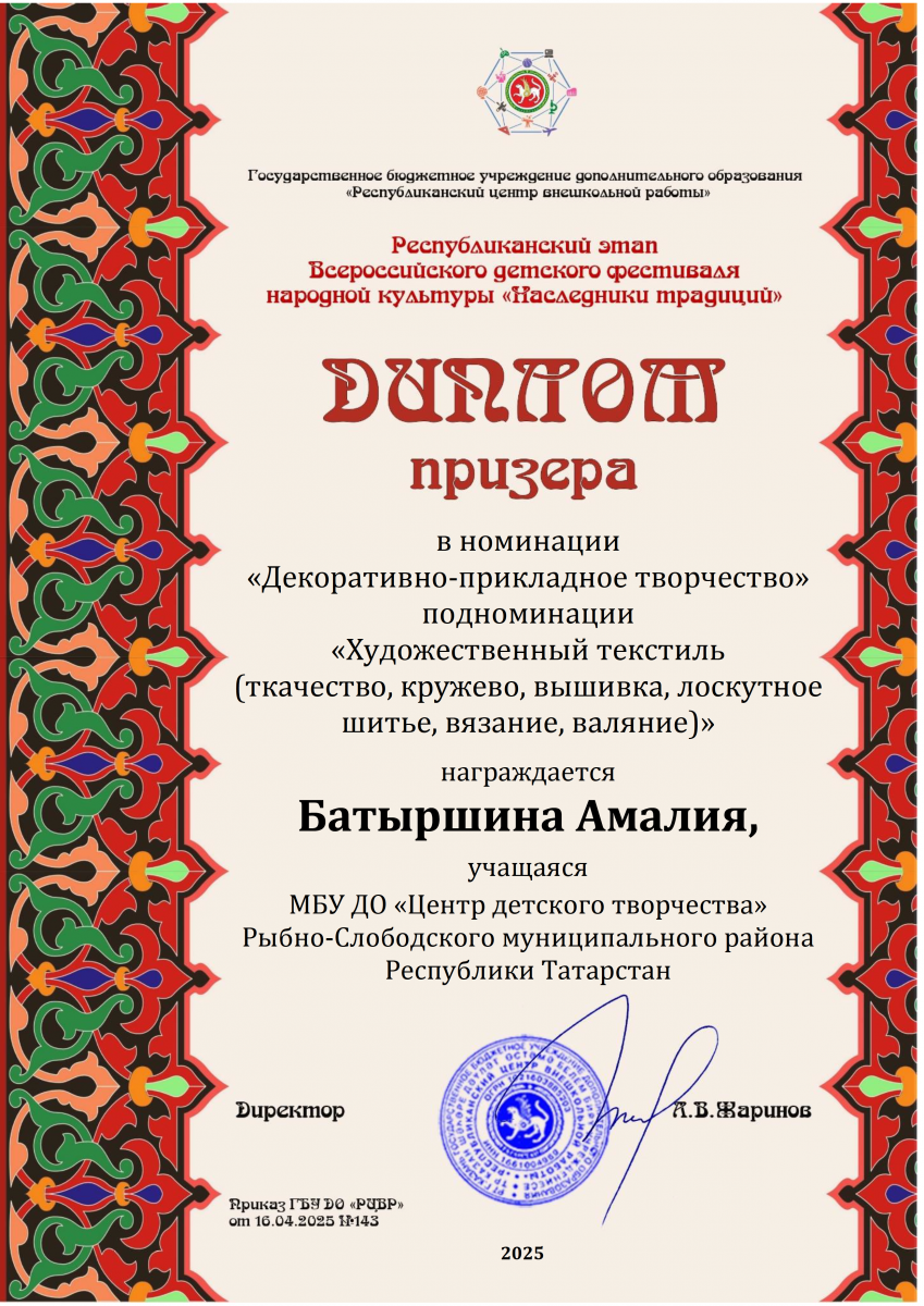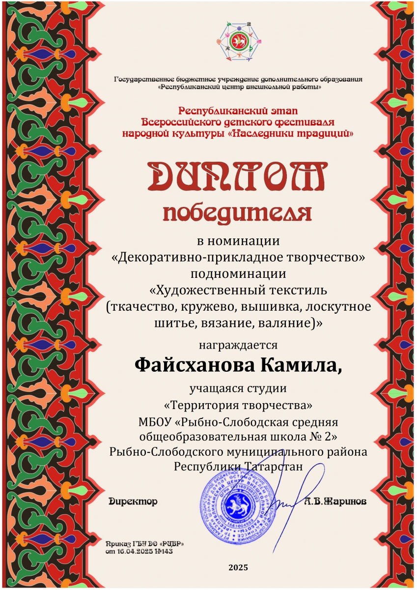 С 11 по 15 апреля 2025 года государственным бюджетным учреждением дополнительного образования «Республиканский центр внешкольной работы» был проведён республиканский этап Всероссийского детского фестиваля народной культуры «Наследники традиций».