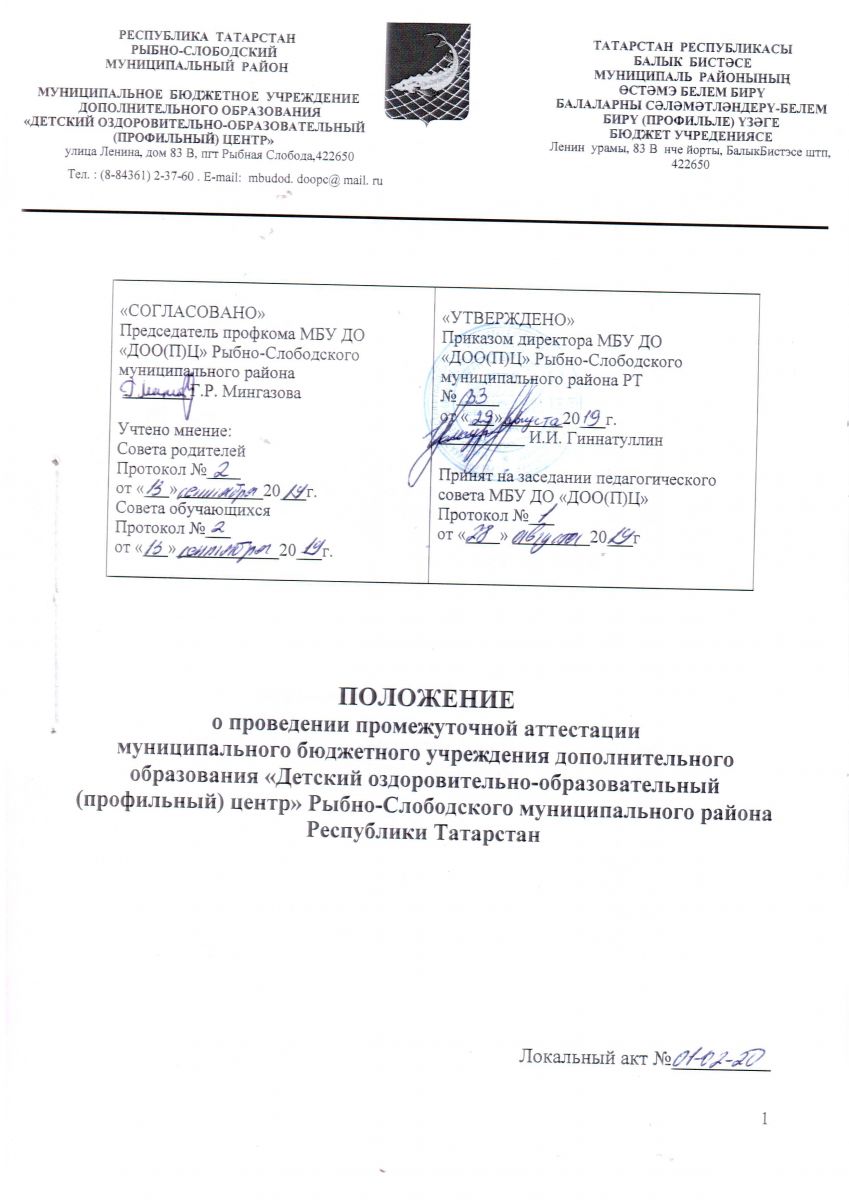 Устав МБУ ДО "ДОО(П)Ц" Рыбно-Слободского муниципального района РТ