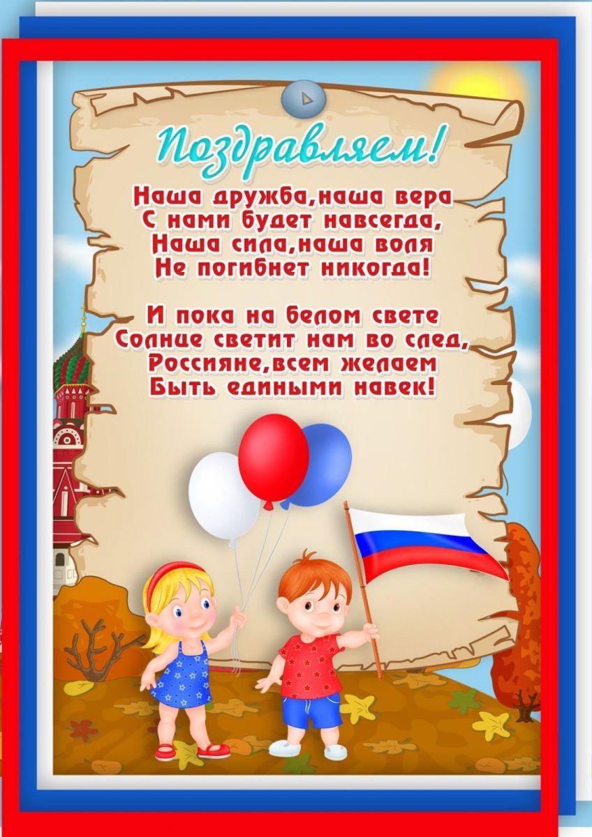 12 июня — это самый молодой государственный праздник свободы, миры и добра. Он символизирует единство всего нашего многонационального народа, напоминает, что все несут ответственность за настоящее и будущее нашей Родины. Официальное название этот праздник получил только 1 февраля 2002 года и стал называться День России. День России – это отличный повод рассказать нашим воспитанникам ещё раз об истории нашей огромной и самой красивой в мире многонациональной страны, о многообразии народных традиций, совершить интересные увлекательные путешествия по просторам нашей необъятной Родины. Так в преддверии праздника Дня России прошли тематические мероприятия. Целью мероприятий было формирование и представлений о России как о государстве, о родной стране, воспитание чувства любви к родному краю, Родине, через презентацию дети наглядно смогли увидеть насколько большая наша страна, сколько народов живет на ее обширной территории в мире и согласии. Детям было рассказано, почему наш флаг состоит из трех цветов, и что обозначает каждый цвет. После этого все вмести сделали коллективную работу. После тихого часа дети на улице рисовали мелками на асфальте на тему «Флаг России».