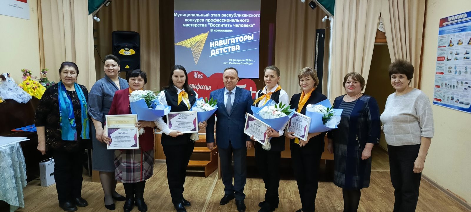 19 февраля на базе МБУ ДО «Центр детского творчества" Рыбно-Слободского муниципального района состоялась торжественная церемония награждения по итогам муниципального этапа Республиканского конкурса профессионального мастерства работников сферы воспитания и дополнительного образования "Воспитать человека" в номинации "Навигаторы детства" среди советников директора по воспитанию и взаимодействию с детскими общественными объединениями.
