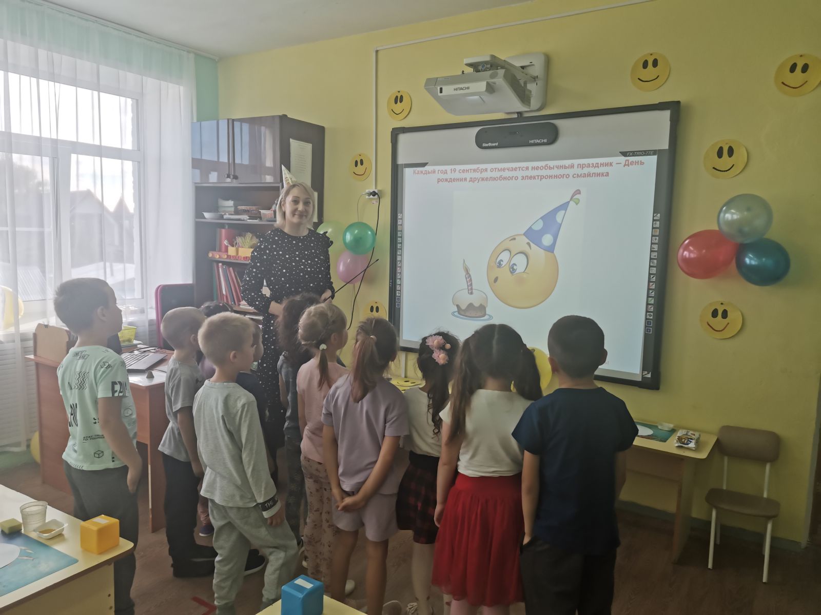 19 сентября отмечают День рождения смайлика. Ребята из группы «Солнышко» вместе с воспитателем Гордеевой О.В. решили тоже отпраздновать это событие! Поиграли в смайлопрятки, устроили смайлохоровод, приготовили поздравительные открытки и рисунки. В рамках международного дня интернета, воспитатель рассказала детям, что смайлики обеспечивают популярность в социальных сетях.