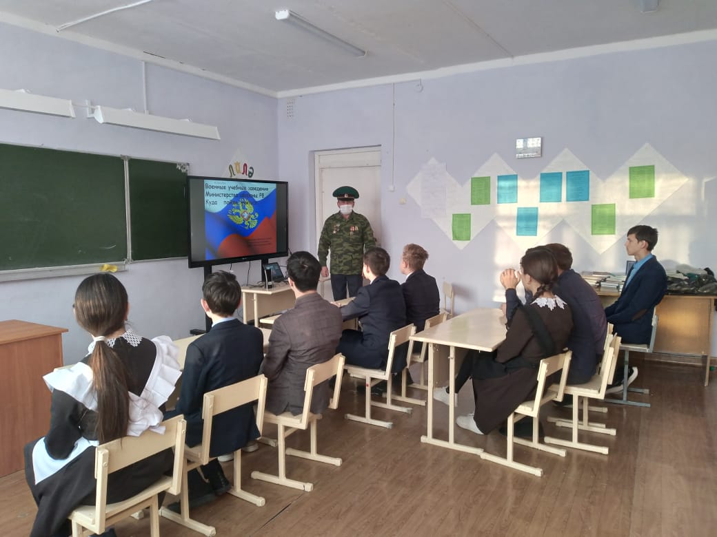 16 февраля 2022 года В МБОУ"Ново-Арышская СОШ" прошёл классный час по теме:"Порядок поступления в Высшее военное учебное заведение РФ".
