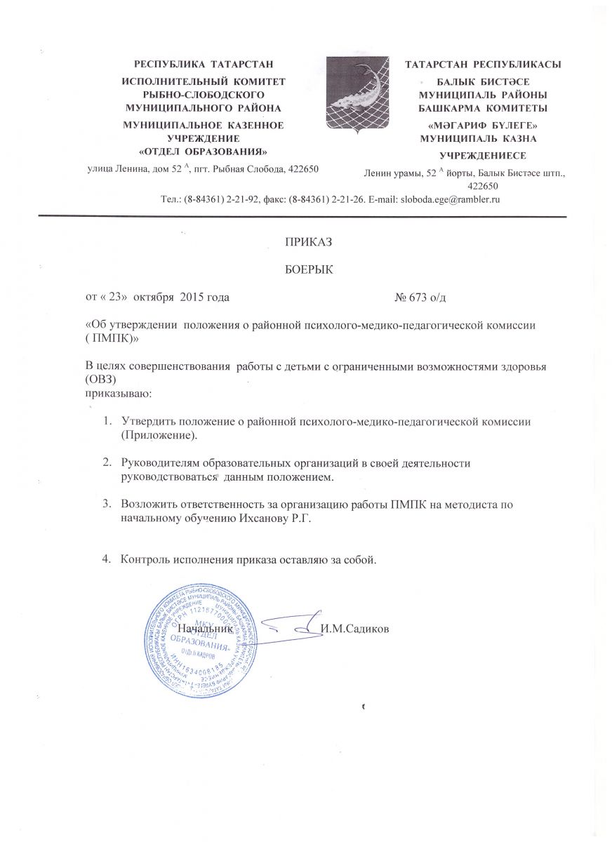 Положение о районной ПМПК МКУ «Отдел образования Исполнительного комитета Рыбно-Слободского муниципального района Республики Татарстан»