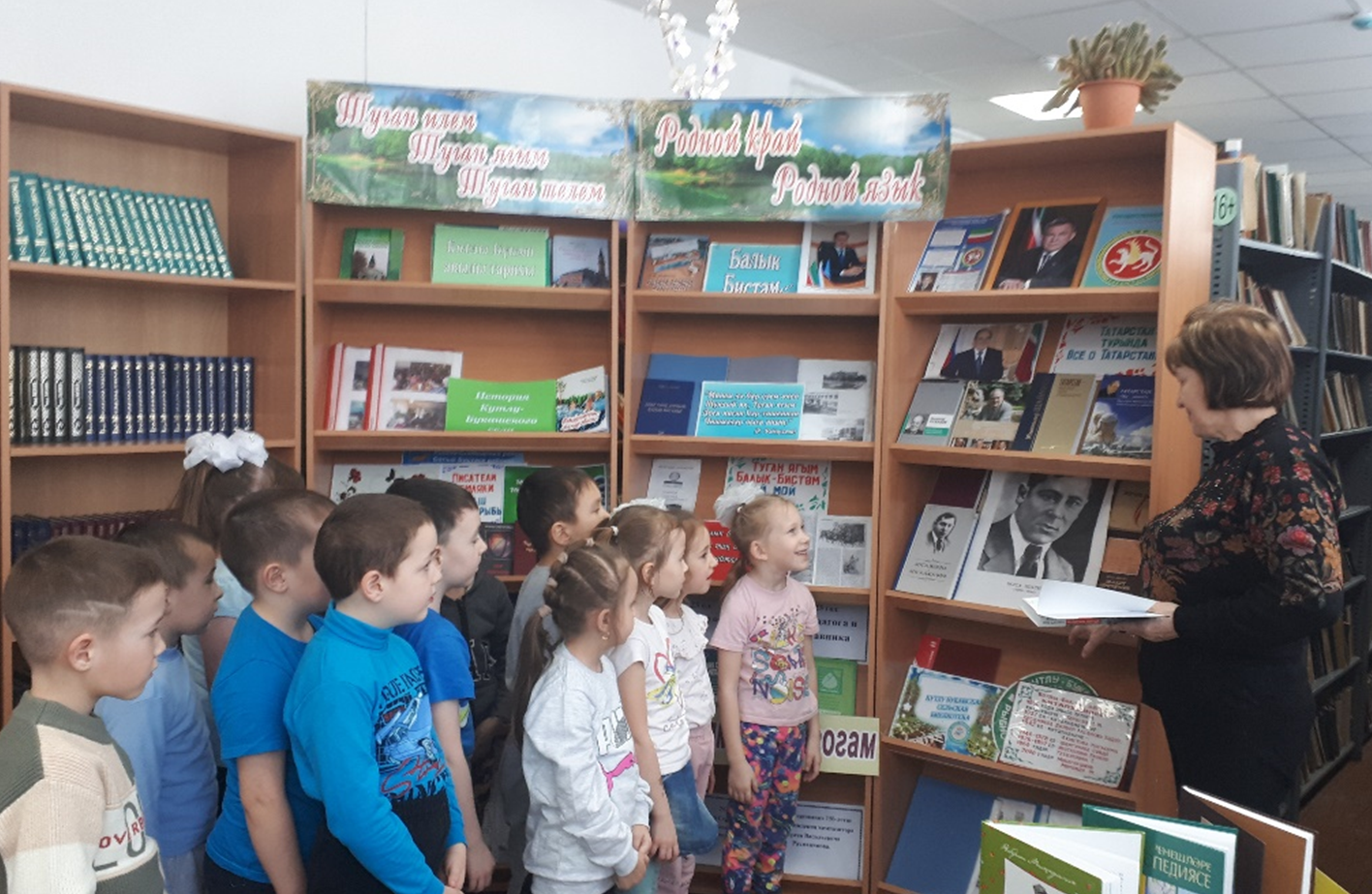 Шул уңайдан зурлар һәм мәктәпкә әзерлек төркемендә тәрбияләнүчеләр белән китапханәгә кердек.