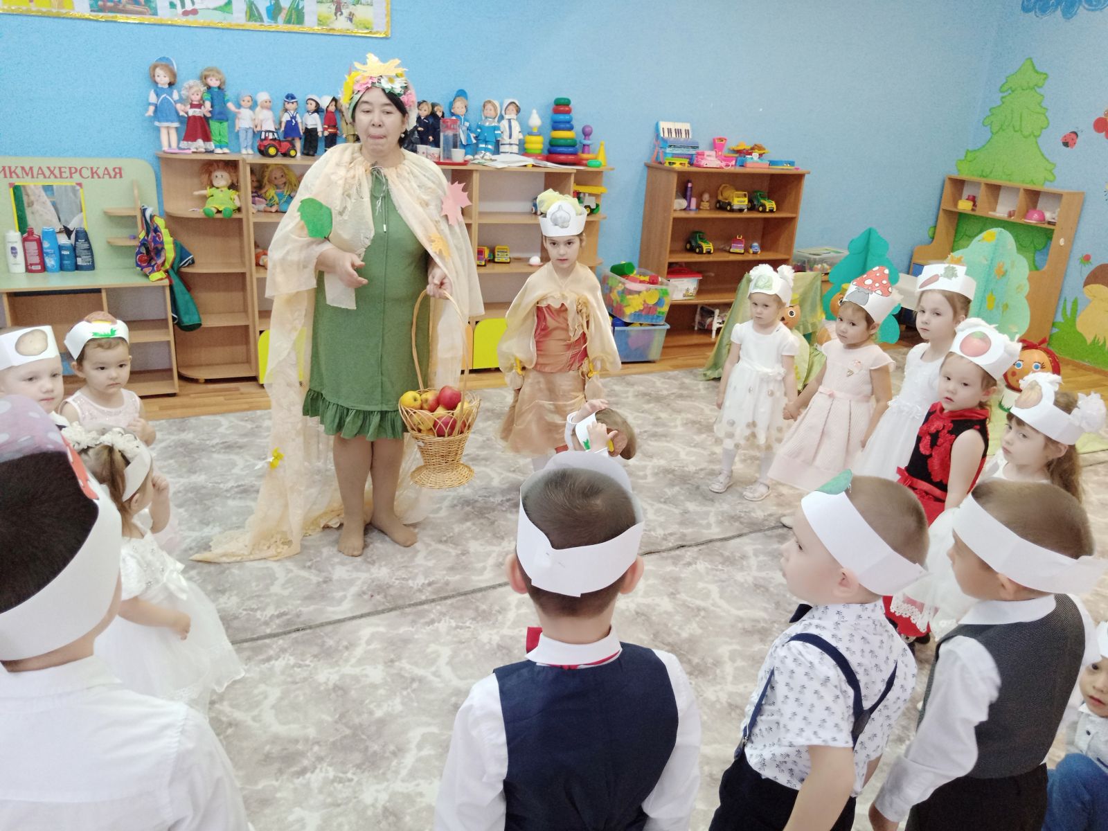 Закрепили у детей представление об осенних урожаях природы, посредством выразительного исполнения ими песен, танцев, стихотворений, инценировок, игр. Создавали радостное настроение у детей об взаимного обучения.