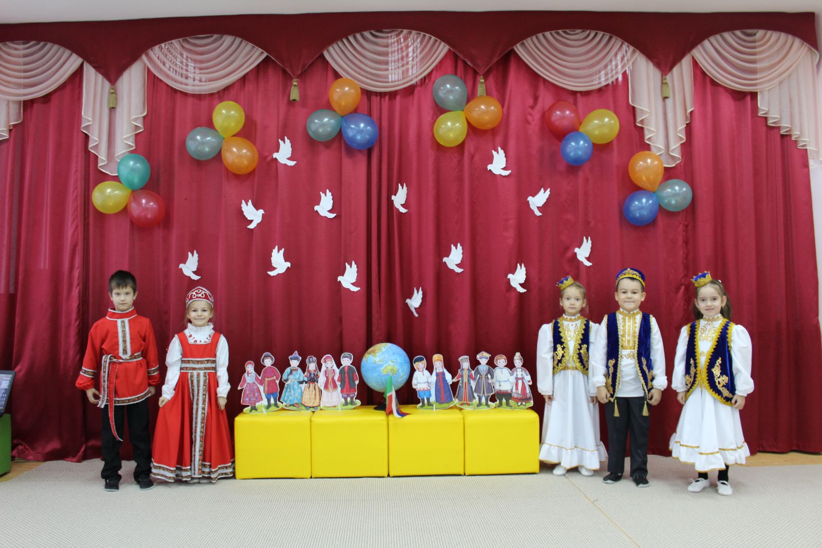 3 ноябрьдә балалар бакчасында «Халыклар бердәмлеге көне»күңел ачу чарасы узды. Урта һәм әзерлек төркемнәре тәрбияләнүчеләре тантаналы марш белән музыка залына җыелдылар. Балалар Россия турында шигырьләр укыдылар, җырлар җырладылар, илебез Россия белән бәйле табышмакларны чиштеләр. Балалар Россия гимнын тыңладылар.Дөнья халыкларының хәрәкәтчән Уеннары уздырыла.балалар безнең илдә яшәүче халыклар, милли костюмнар, гореф - гадәтләр, уеннар һ.б. белән таныштылар. Россиянең көче илдә төрле милләт кешеләренең тату яшәвендә һәм аларның барысы да үз Ватанын-Россияне бертигез яраталар.