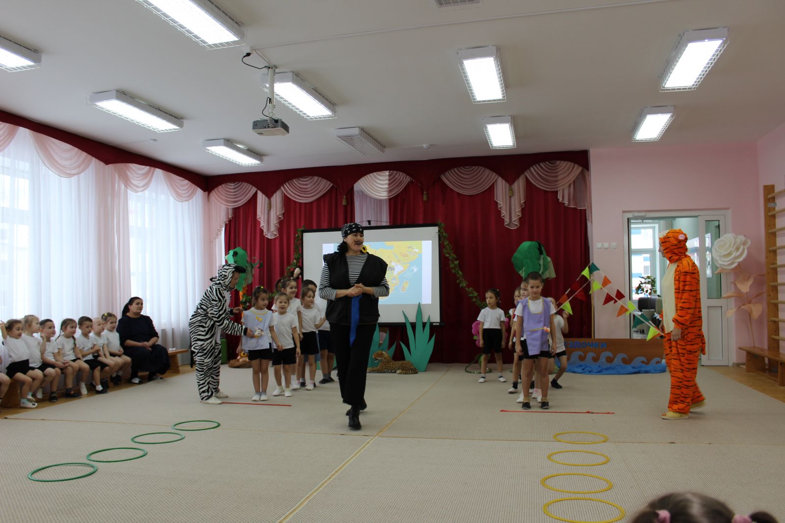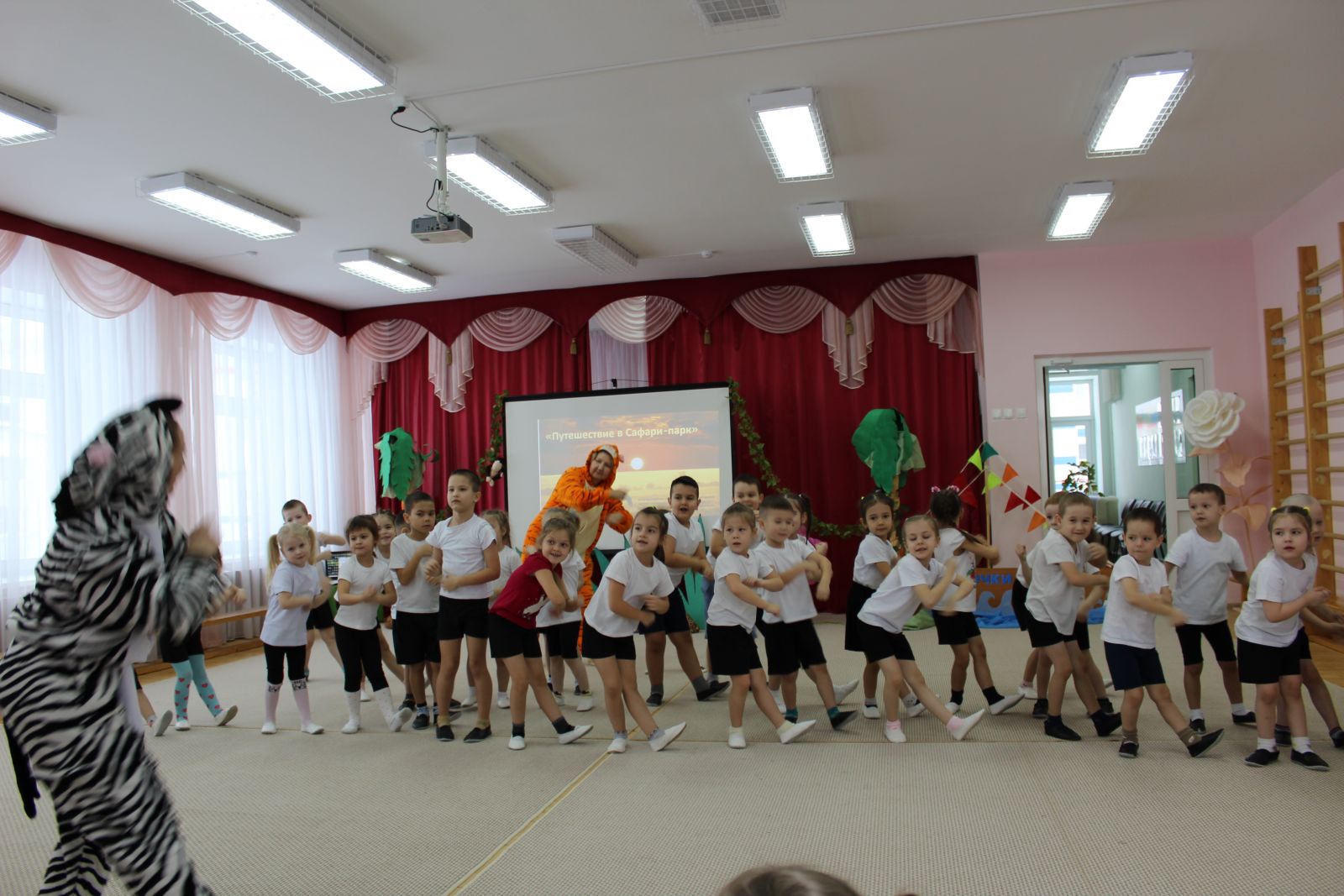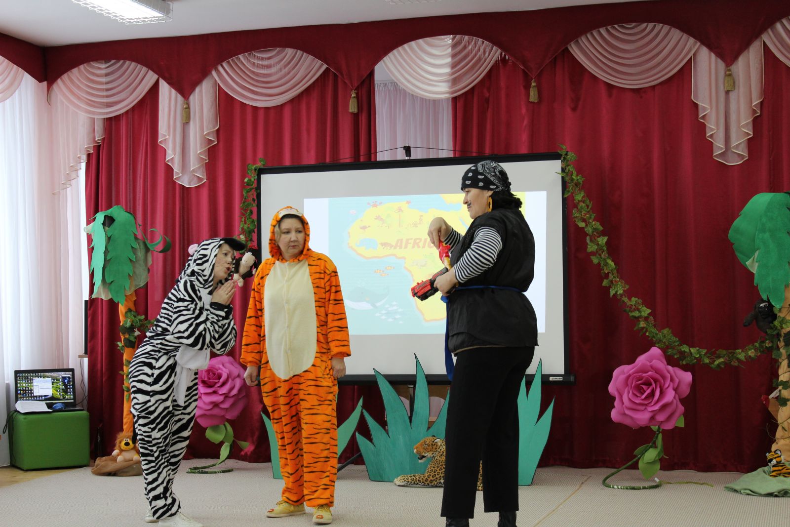 Безнең балалар бакчасында урта һәм мәктәпкә әзерлек төркемнәрендә "Сафари-паркка сәяхәт" (физик культура буенча инструктор, музыка җитәкчесе һәм логопедның уртак эшчәнлеге) интеграцияләнгән күңел ачу оештырылды. Балалар Африкага сәяхәт итәләр, анда явыз Бармалей әсирлеккә алган хайваннарны коткаруда катнашалар. Нинди хайваннарны һәм ни өчен ерткычлар һәм үлән ашаучылар дип атауларын белеп, Бармалей белән ярышканнар, аңа Африка турында күңелле җыр җырлаганнар һәм флешмоб оештырганнар. Балаларның тырышлыгы белән явыз кеше игелекле була һәм барлык хайваннар әсирлектән азат ителә.