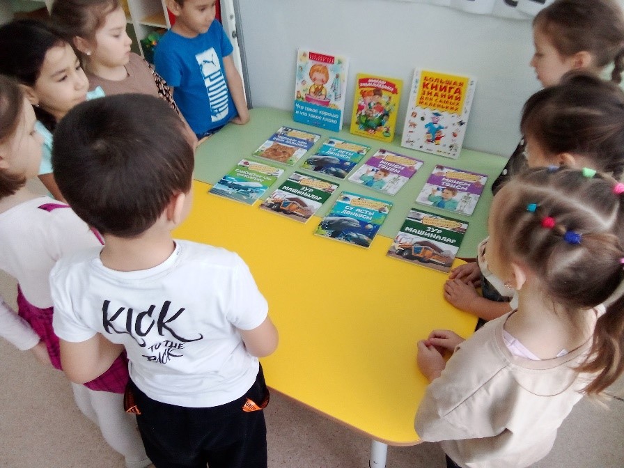 свойства воды, песка и воздуха. Рассуждая и экспериментируя, ребята сделали выводы. Фәнни юнәлештәге китаплар күргәзмәсе оештырдык. «Фән» дигән сүзнең мәгънәсе турында сөйләштек. Балалар китапларны кызыксынып карадылар. Сораулар бирделәр һәм бергәләп аларга җавап эзләделәр. «Фәнни лаборатория»дә балалар галимнәр ролендә су, ком һәм һаваның үзлекләрен ачыкладылар. Фикер йөртеп һәм экспериментлар ясап, балалар нәтиҗә ясадылар.
