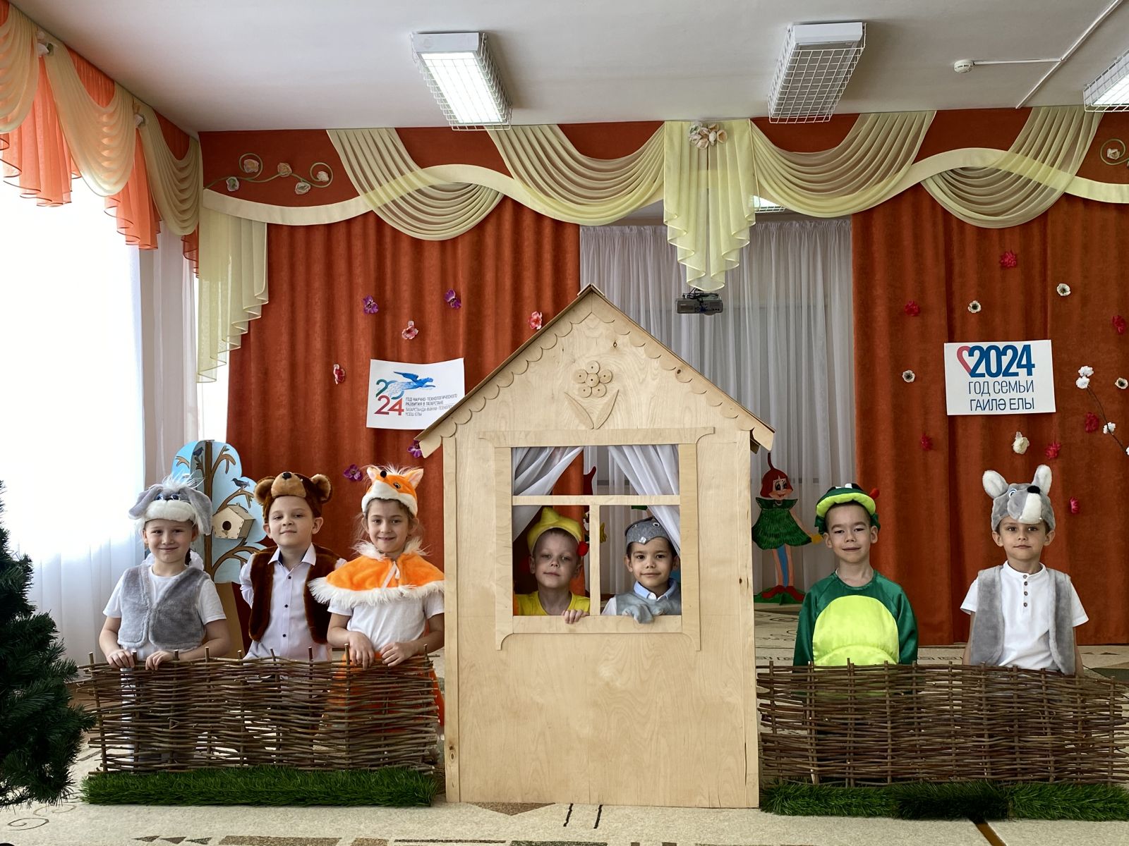 Балалар театральләштерүдә бик теләп катнаштылар. Алар әкият персонаңларына әверелеп, аларда булган вакыйгаларны кичерделәр.