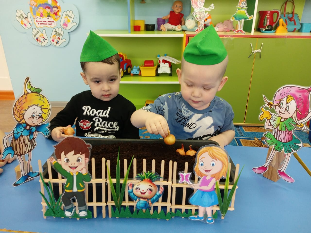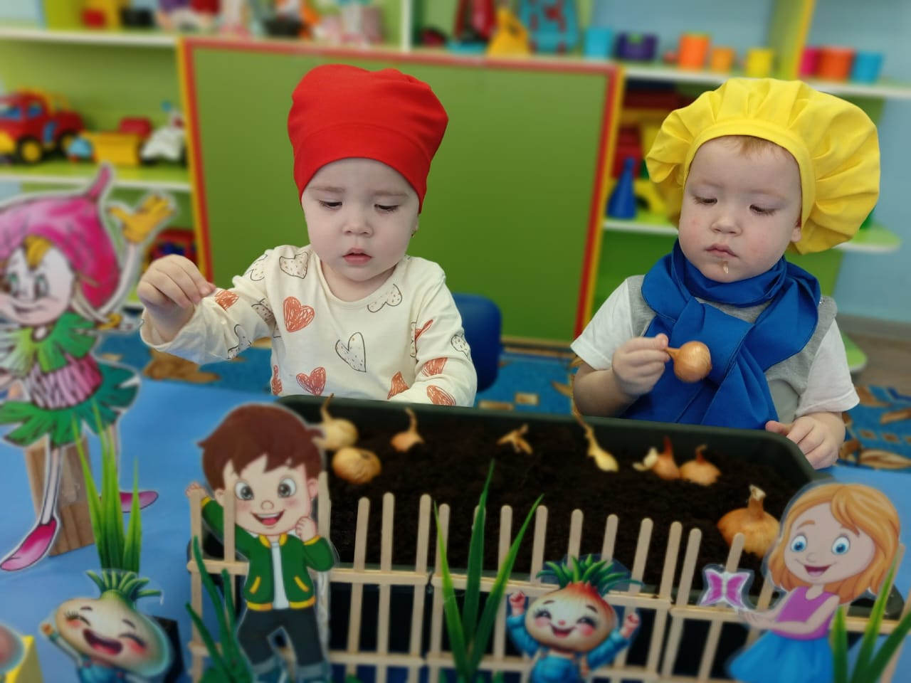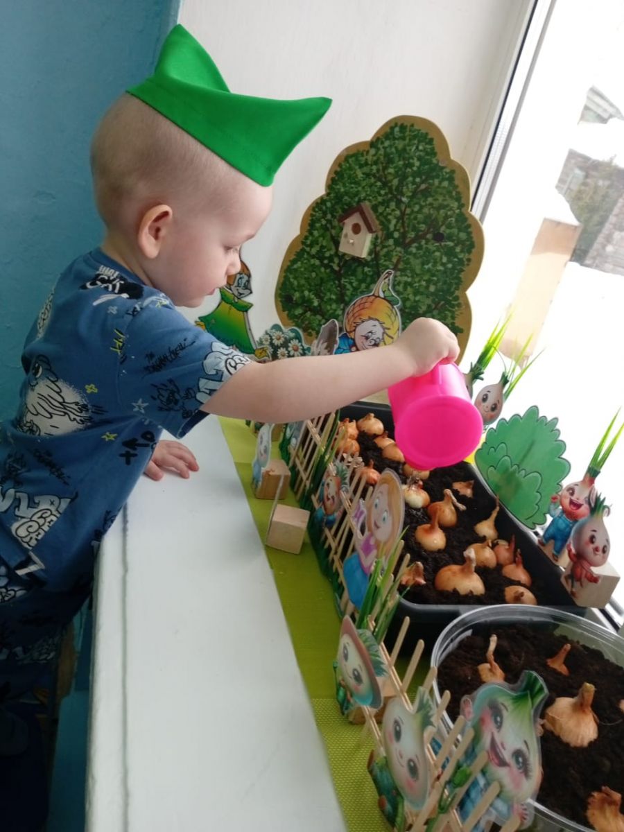 Посадка лука в землю на подоконнике в детском саду