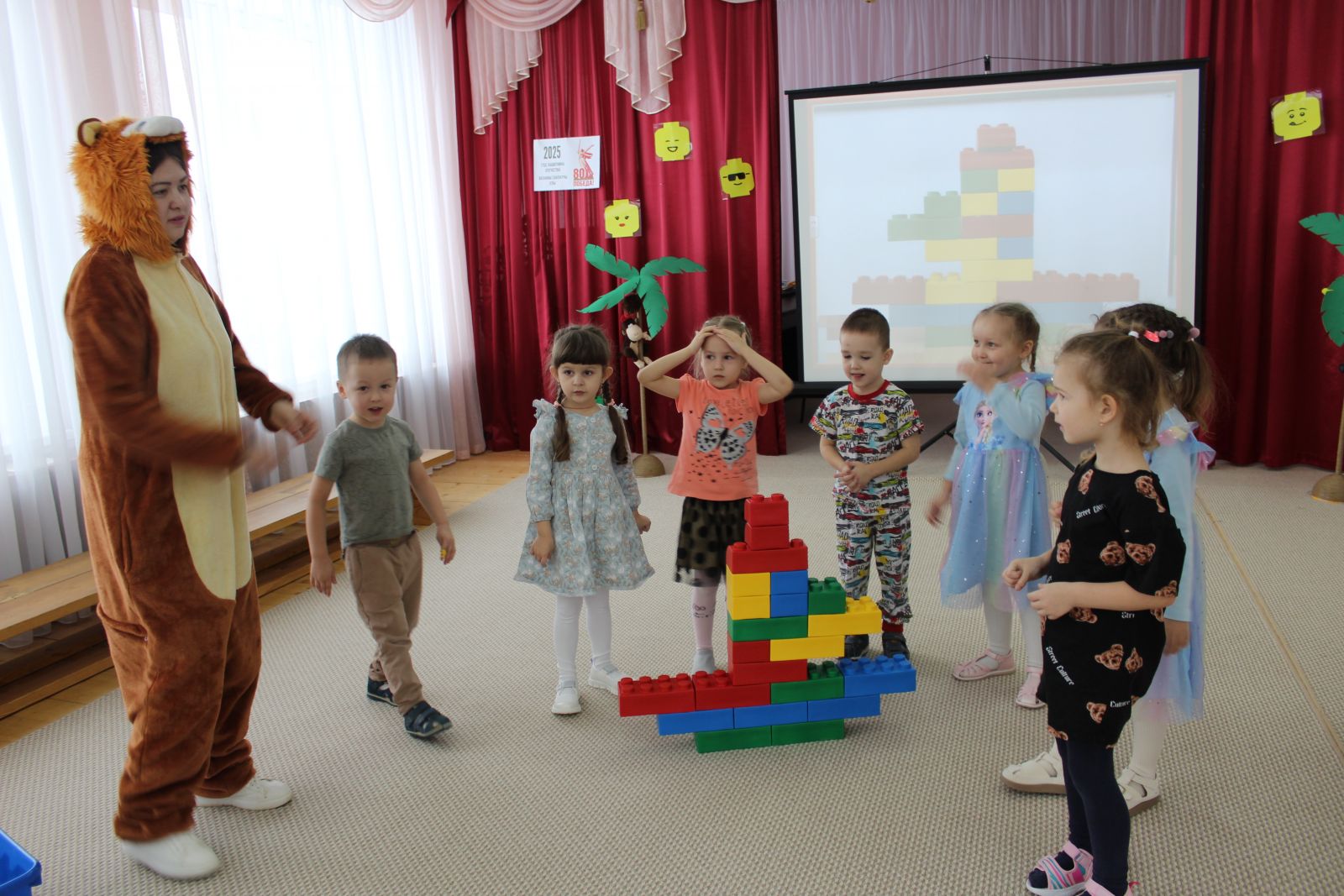 Бүген «Йолдыз» балалар бакчасында урта төркем балалары, легоконструкторны яратучылар ,Мадагаскардан кызыклы дуслары Алекс һәм Мартин белән "Лего-утрауга сәяхәт" кә киттеләр. Алар төрле биремнәрне үтәп , явыз сихерченең сихереннән җиңелрәк котылырга ярдәм иткәннәр. Балаларга үзләренең җитезлекләрен, төс һәм форманы белүләрен, логикасын , фантазияләрен күрсәтергә туры килде. Коткарылган Легоша бәйрәмгә килеп балалар белән уйный алган!