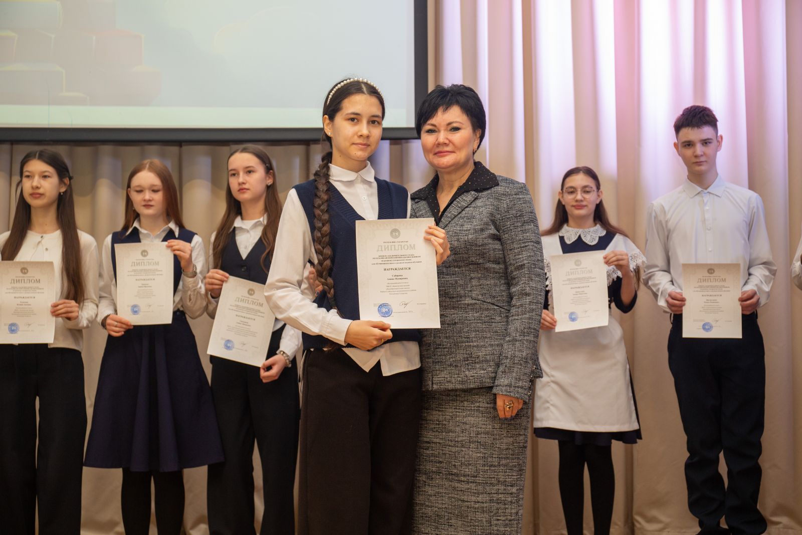 - Сабирова Амина, обучающаяся 8 класса МБОУ "Биектауская СОШ", призер заключительного этапа республиканской олимпиады школьников по предмету "Русский язык", наставник Сабирова Лилия Шамилевна;