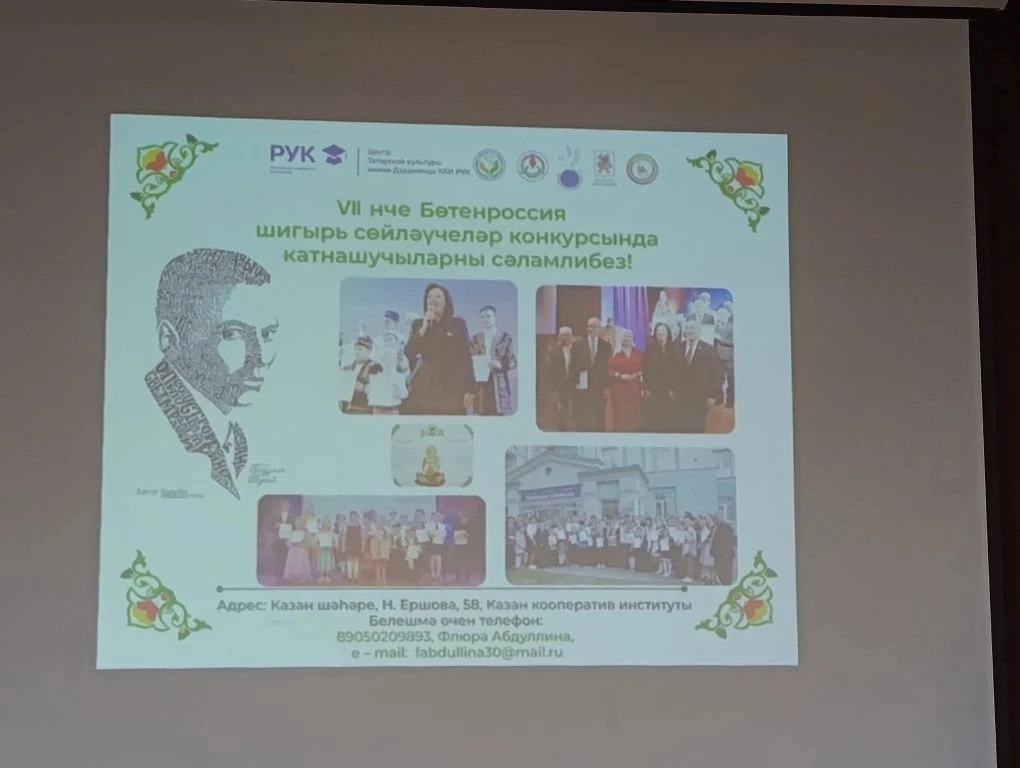 Опубликовано: 17.04.202616 апреля на базе Российского университета кооперации г. Казани были проведены итоги всероссийского конкурса «Тукайга мәхәббәт илә…», который был организован Центром татарской культуры Казанского кооперативного института РУК совместно с Всероссийским общественным фондом «Татарская семья».