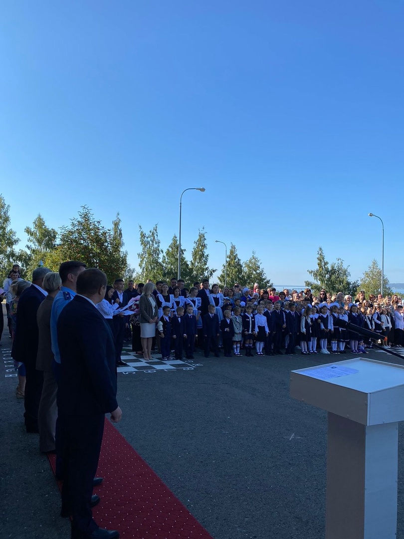 Открытие линейки было ознаменовано поднятием флага России и флага Республики Татарстан, а также исполнением гимнов. Директор школы Захарова Лариса Николаевна поздравила всех обучающихся, учителей и родителей с началом нового учебного года.