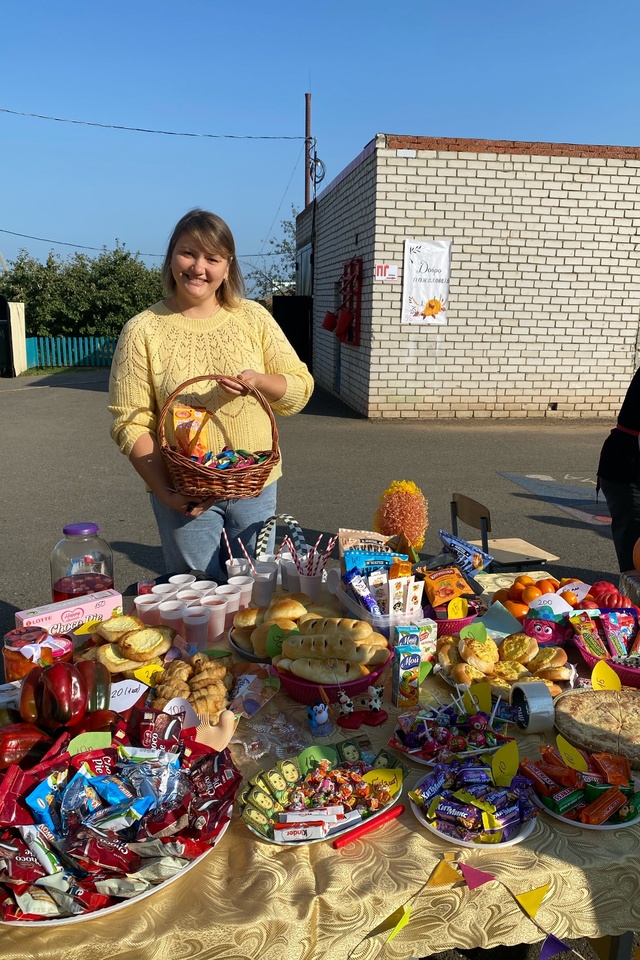 Каждый класс школы принёс на продажу свою продукцию: поделки, изделия из бисера, соленья, варенья, овощи, фрукты и много другое. Тут уж никто ни стоял в стороне!