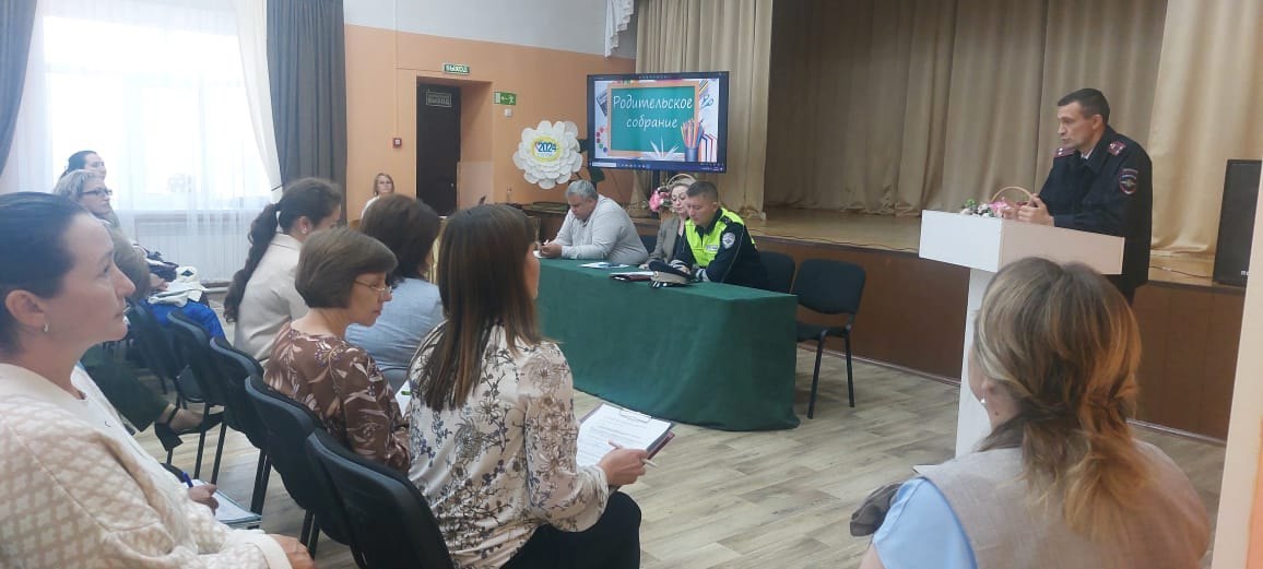 Открыли собрание представители отдела внутренних дел по Рыбно-Слободскому району РТ Галимов Р. Ф. начальник полиции и Шигапов И. З. начальник ГИБДД. Были разъяснены вопросы о необходимости соблюдения 71 закона РТ и соблюдение правил дорожного движения как пешеходов,так и водителей.