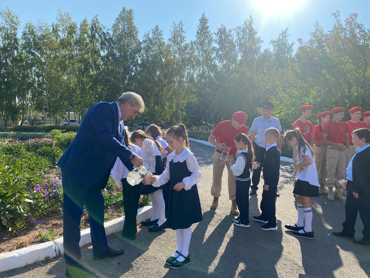 Сегодня на линейке обучающиеся начальной школы приняли участие в акции «Капля жизни», посвященной Дню солидарности в борьбе с терроризмом, совместно с юнармейцами и советником главы администрации Рыбно- Слободского муниципального района Республики Татарстан Н.Б. Карпеевым и сотрудником ОВД МВД России в Рыбно- Слободском муниципальном районе Республики Татарстан Р.Д. Хаматвалеевым.