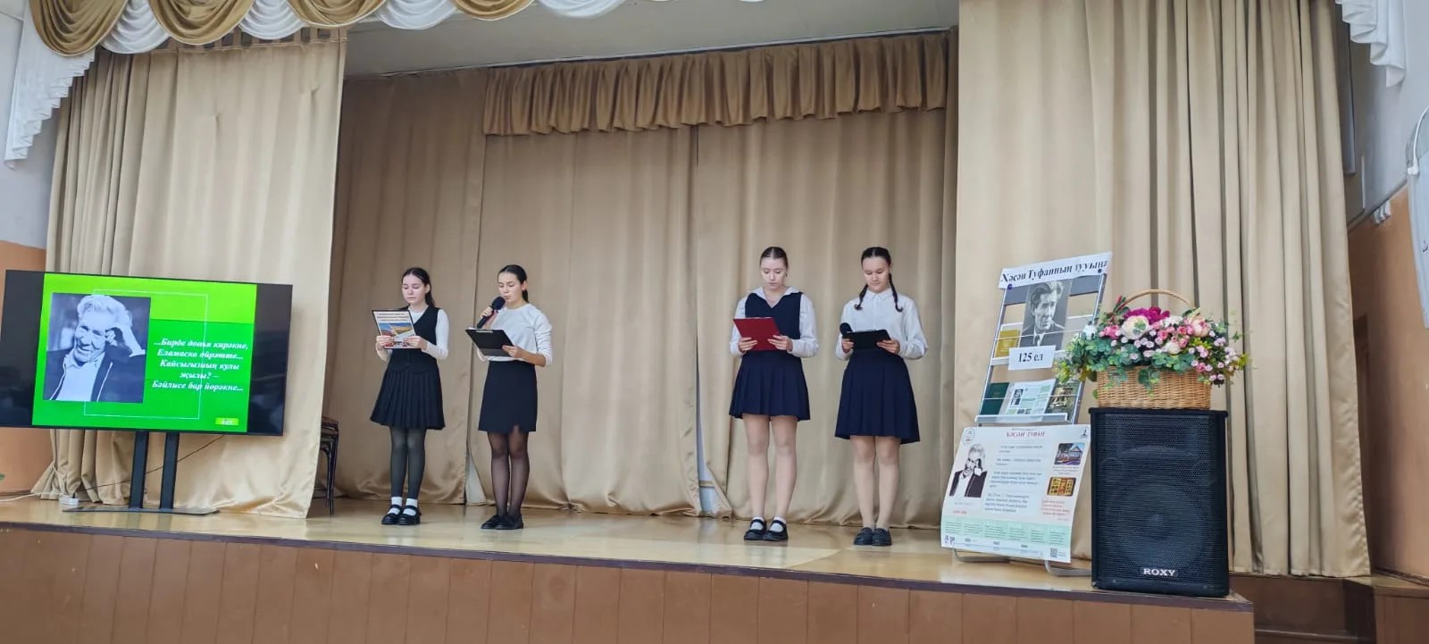 5 декабря учащиеся 11,9,8,6 классов участвовали на литературном вечере посвященном татарскому поэту Хасану Туфану, который вместе с ними подготовили учителя Якупова Р.Г., Токранова Э.И., Хафизова Р.М.. Трагическая судьба поэта и его произведения никого не оставили равнодушным. Мероприятие завершилось песней “Казанские вечера”, которое прозвучало как напутствие выпускным классам.