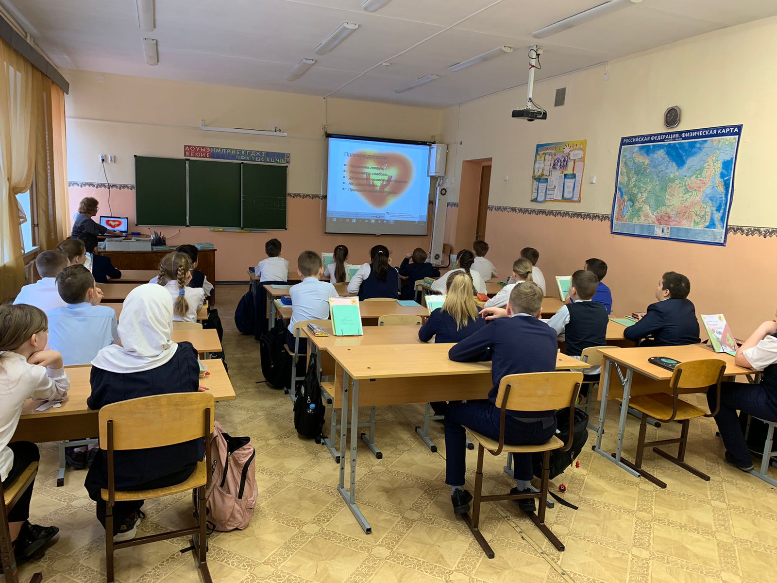 С ребятами была проведена беседа о общечеловеческих качествах - доброте, милосердии, сострадании и их значимости в системе человеческих отношений. После была показана презентация. Ребята выяснили, что значит быть добрым человеком. Учащиеся приводили примеры из своей личной жизни, когда доброта творила истинные чудеса. Беседа и презентация способствовала воспитанию в детях добрых человеческих взаимоотношений, отзывчивости и милосердия к окружающим, друг к другу.20 нче апрель көнне безнең мәктәптә "Язгы игелек атнасы" акциясе кысаларында »Яхшылык дәресләре " үткәрелде,дәресләрдә ГХАТ бүлеге җитәкчесе Зарипова м.ф. катнашты.