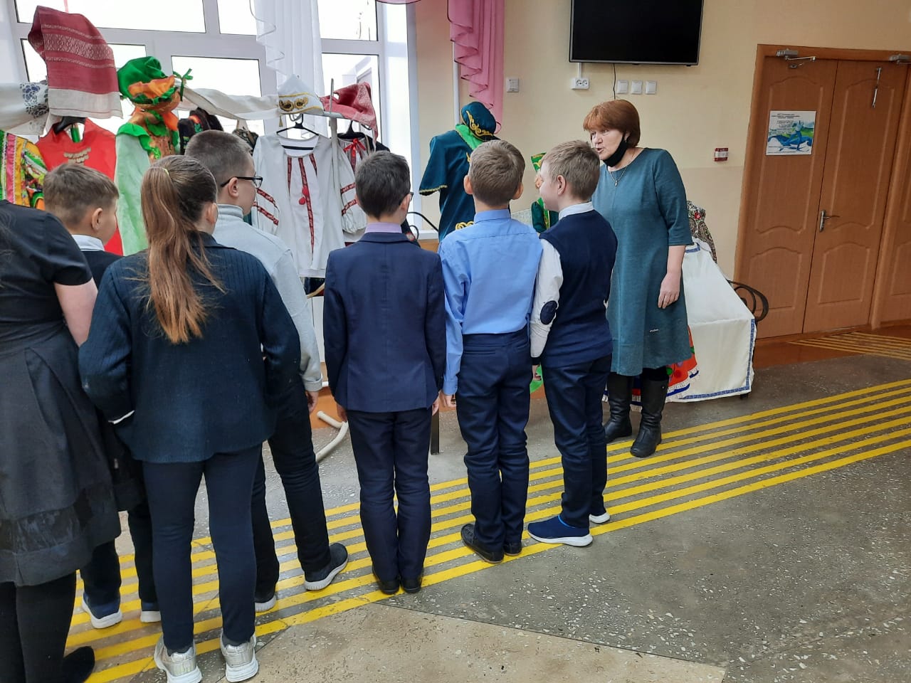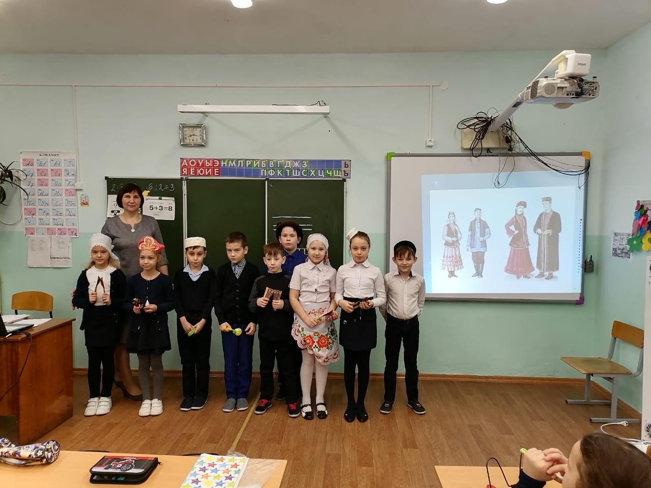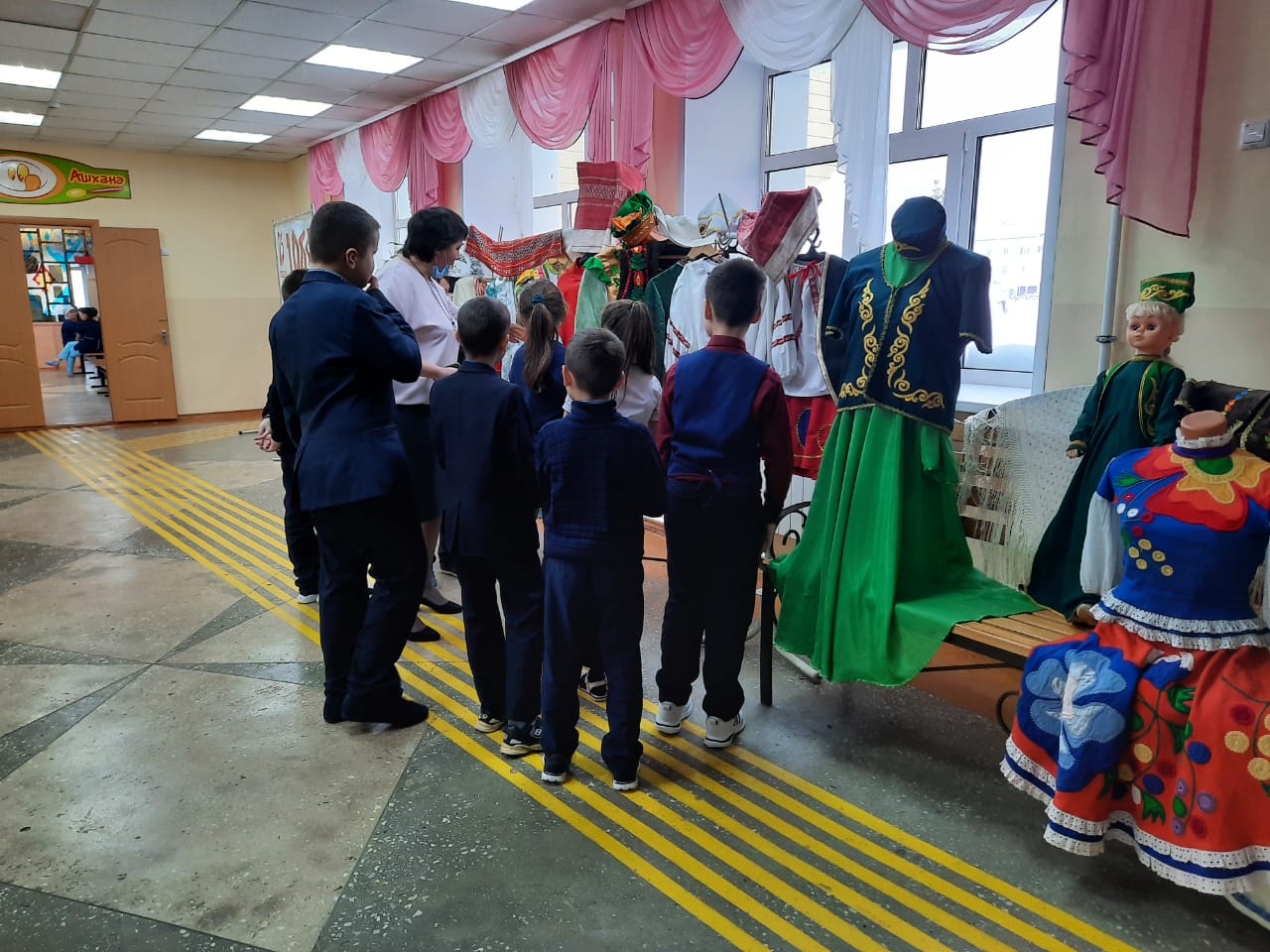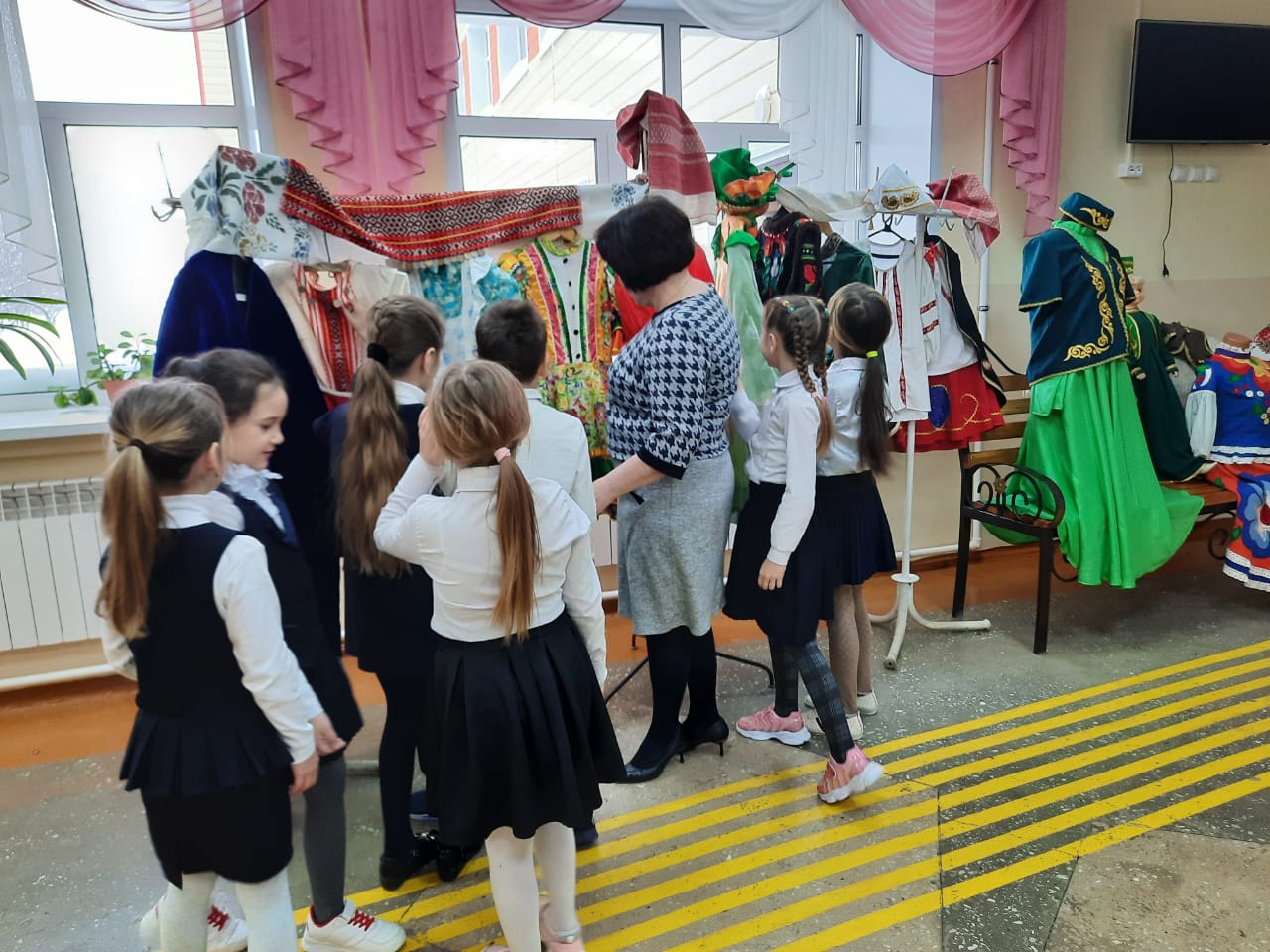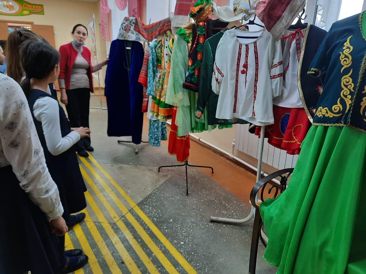 Татарстанда туган телләр һәм халыклар дуслыгы елы кысаларында мәктәбебездә милли киемнәр күргәзмәсе оештырылды. Ул балаларны Татарстаныбызда яшәүче төрле халыкларның милли киемнәре, милли орнаментлар белән якыннанрак таныштыру, кызыксыну уяту һәм эстетик тәрбия бирү, халыкларның милли сәнгатенә мәхәббәт һәм ихтирам тәрбияләү максатыннан оештырылды.