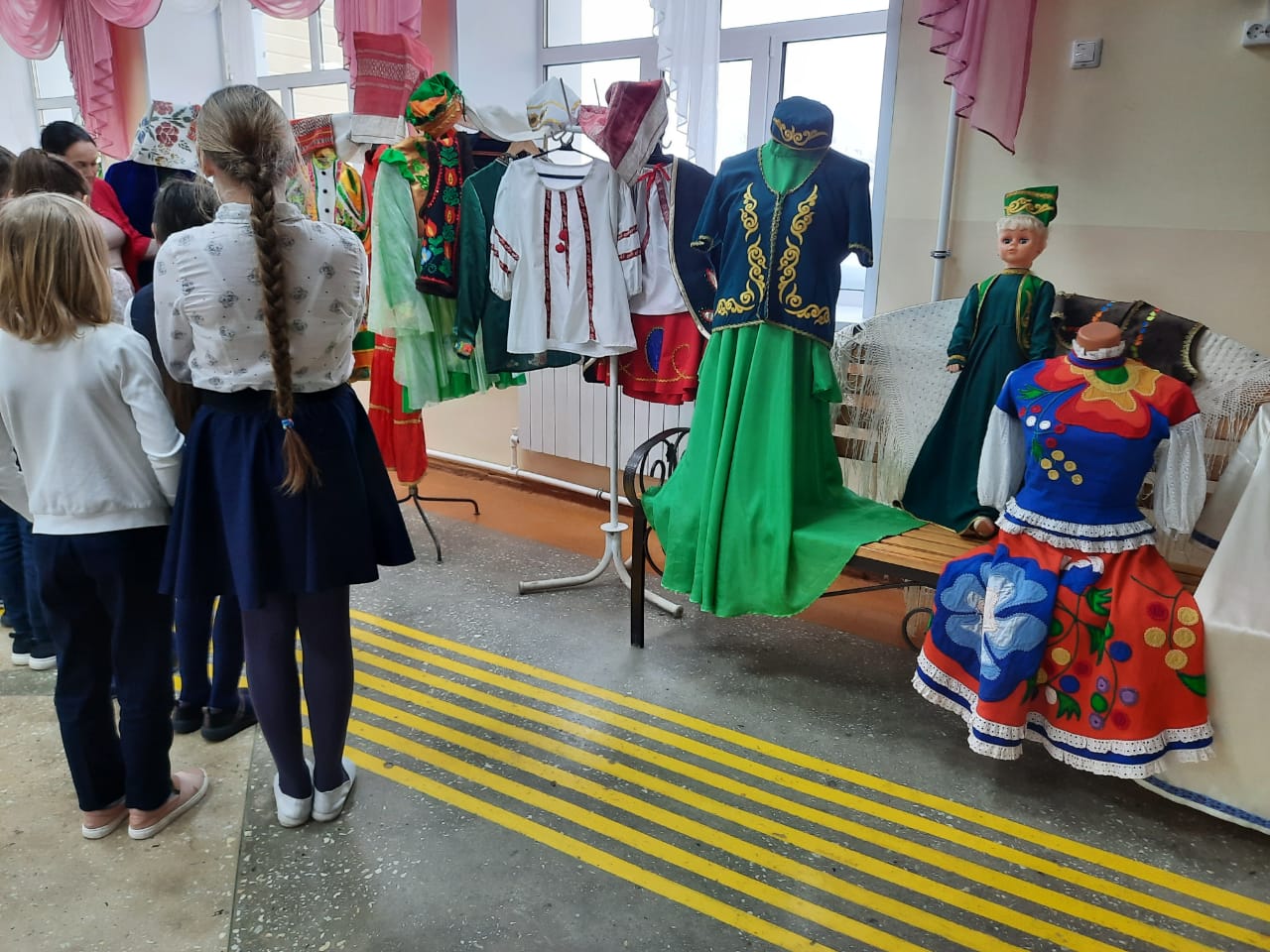 В рамках Года родных языков и народного единства в Татарстане, в нашей школе была организована выставка национальных костюмов. Мероприятие было организовано с целью ознакомления детей с национальными костюмами различных народов, проживающих в Республике Татарстан, формирования интереса и эстетического воспитания, воспитания любви и уважения к национальным традициям народов.