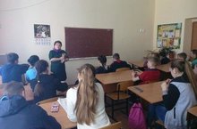 Педагог-библиотекарь Гилемханова С.М. выступила с обзором литературы: "И в памяти, и в книге-навсегда". Слушателями были учащиеся 7 Б класса. Они ознакомились с книгами о войне, в том числе заинтересовались "Книгой памяти".