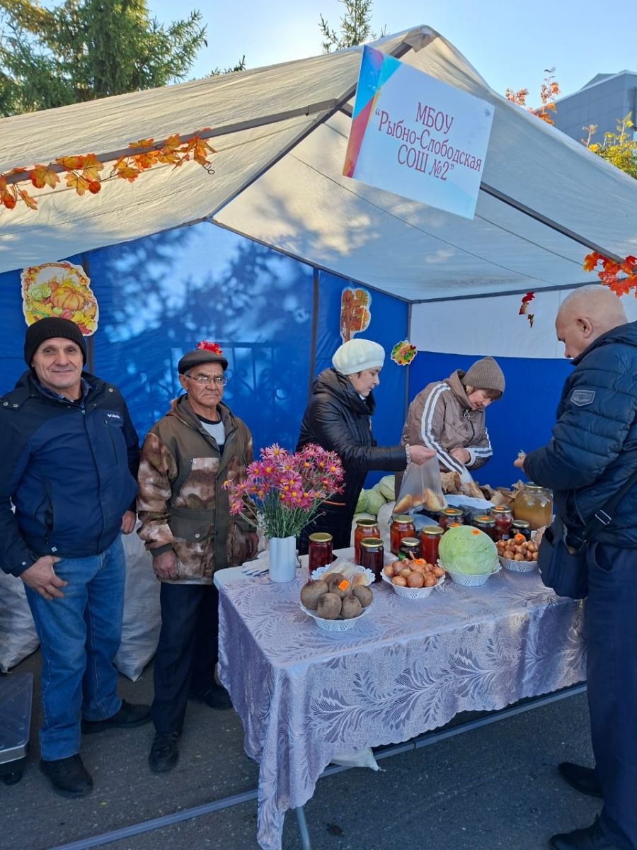 В этот день, МБОУ «Рыбно - Слободская СОШ №2», реализовала на ярмарке свою продукцию. Гости ярмарки активно запасались у нас морковью, свеклой, капустой, луком. Также пользовались спросом выпечки и консервированные продукции.