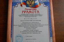 Наша школа заняла 1 место в районном смотре-конкурсе по подготовке организаций образования к новому 2016-2017 учебному году и награждена почетной грамотой МКУ"Отдел образования".