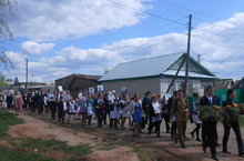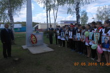 Барый Шәвәлиев бюсты каршында Бөек Җиңүнең 71 еллыгына багышланган тантаналы линейка уткәрдек. Мәктәп директоры Габдрахманов И.Г,авылдашыбыз шагыйрә Гарифуллина Р.А.чагыш ясадылар,бәйрәм белән котладылар. Укучылар Барый Шәвәлиев бюстына венок,чәчәкләр куйдылар.Һәлак булганнарны 1 минут тынлык белән искә алдык.