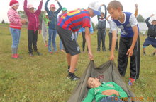 Ямьле лагерь көннәрен ямьләндереп бүген бездә Сабантуй бәйрәме булды. Эй күңелле, эй кызык булды да соң ! Капчык белән сугыштык, йомырка һәм капчык белән йөгердек,чүлмәк ваттык,бүләкләр кистек,милли уеннар уйнадык. Ә иң күңеллесе Сабантуйның йөзек кашы милли көрәш булды. Чын Сабантуйлардагыча шобага салыштык. Жюри әгъзасы кем дип әйтегез әле сез? Якташыбыз, авылдашыбыз, район мәшгульлек үзәге директоры Рәсимә Әхмәтзакировна! Көрәшмичә кара син ! Тырышты, тартышты Ханов Азат , әмма беренчелекне бирмәде. Икенче урында Галимуллин Нәфис, өченче урында Ханов Рифат булды. Ә кызлар бил алышуда җанатарлар булдылар. Бәйрәм онытылмаслык булды.