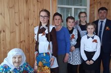 Поздравление вдовы ветерана Ввеликой Отечественной войны Хузязяновой З.Х.\Бөек Ватан сугыш ветеранының тол хатыны Хуҗаҗанова Җамалия әбине котлау.
