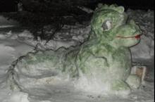 Мәктәп янында Аҗдаһа елы килү уңыеннан Шакиров Федаель, Гарипов Нияз һәм Каримов Дамир кардан аҗдаһа ясадылар.