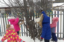Балаларыбыз кечкенәдән үк кошларны кайгыртырга өйрәнәләр.Кыш көне аларга азык табу авыр булганлыктан, җимлекләр урнаштырып һәм җимлекләргә ипи ваклары, ярмалар куйдылар.