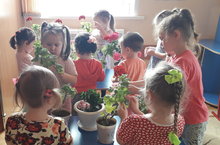 Балалар бакчабызда үсә торган гөлләрнең яфрактагы тузаннарын, төпләрен йомшартып, су сибеп торалар.